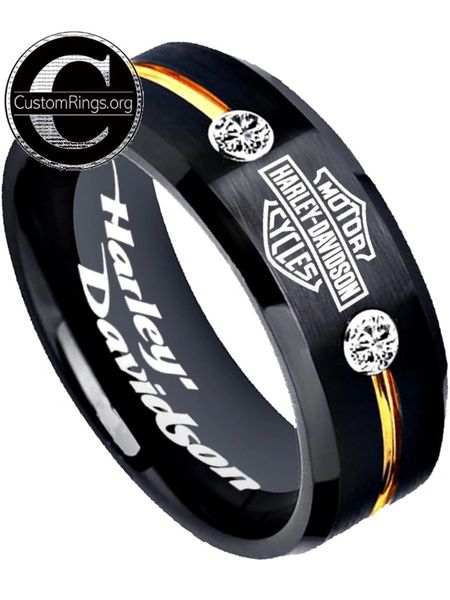 Harley Davidson Ring Hd Motorcycle Logo Ring Black And Gold Cz